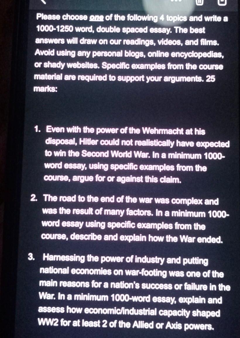 3000 word essay double spaced.
